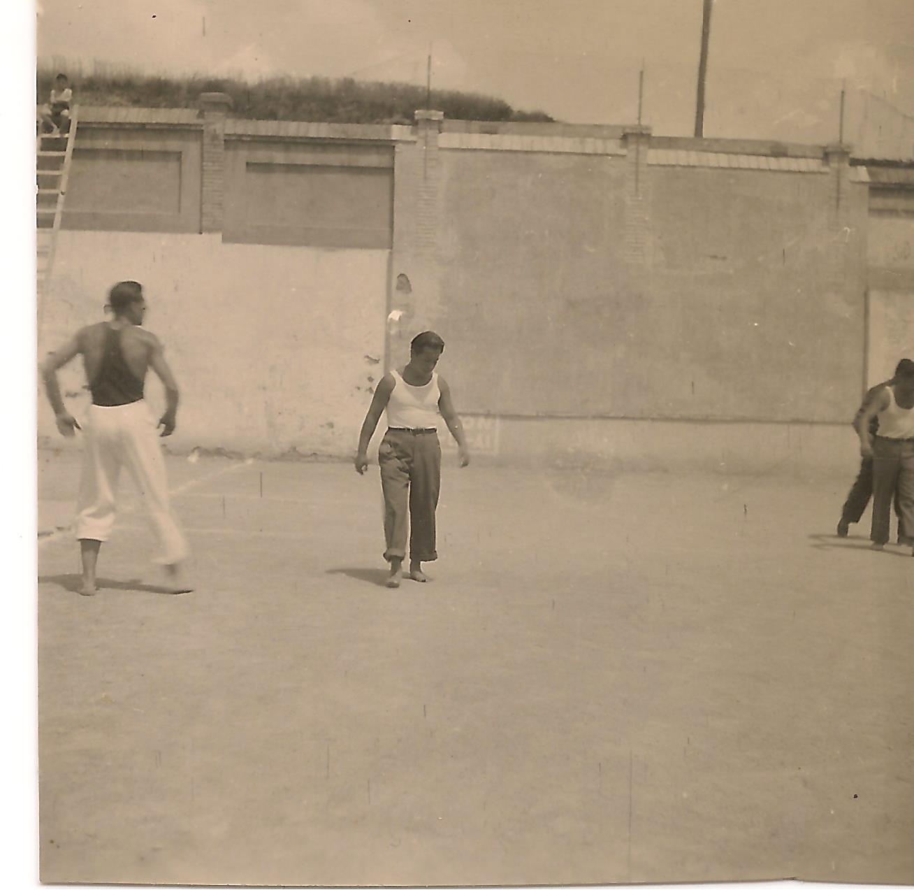 en el centre ajupit hi ha el Miguel un dels tres germans Càmera (Miguel, Pascual i Pablo) grans aficionats a la Pilota Basca que eren originaris de Baños (Burgos).